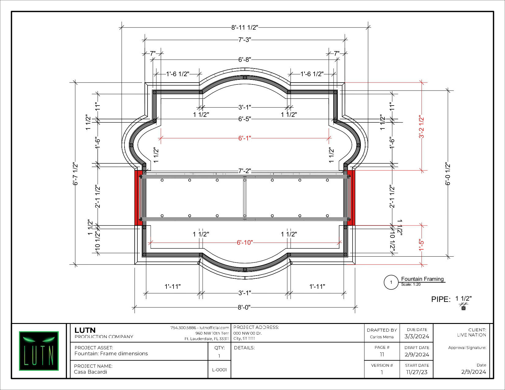 My contributions to this project were in creating build drawings of the overall build, details for its individual assets, and working the changes for subsequent iterations. Original design was briefed by the team at LIVE NATION.